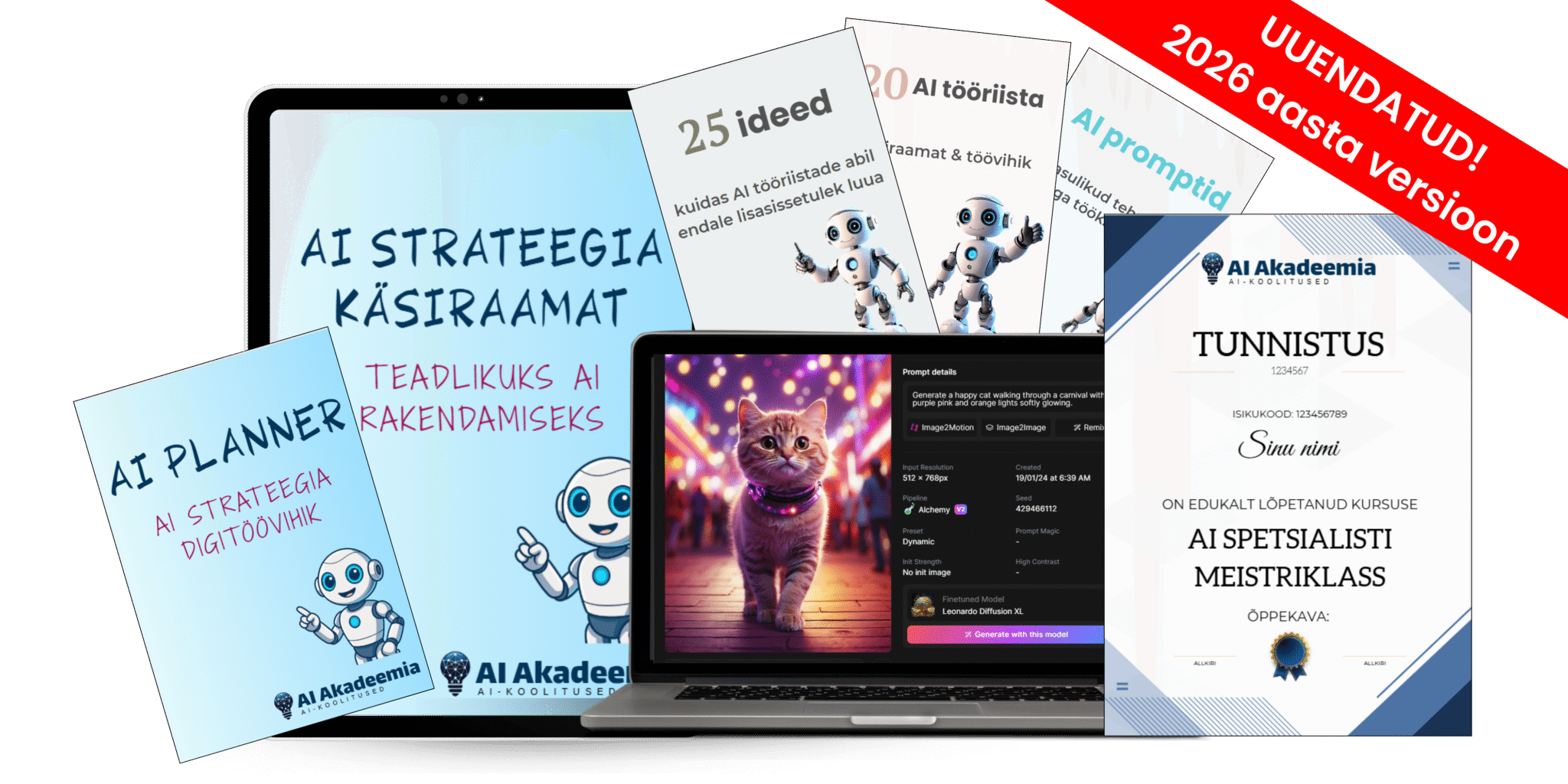 - AI käsiraamat: ülevaade 20st AI tööriistast - kui sulle meeldib AI tööriistade kohta teadmisi koguda ka kirjalikus vormis, saad seda teha AI käsiraamatu abil.